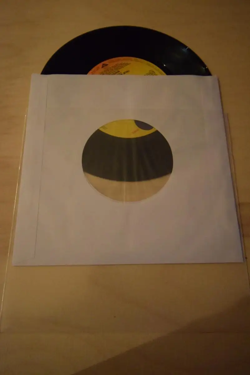 ALLE Singles kommen in neuer , neutraler Innenhülle und zusammen mit dem Cover in einer PE Außenhülle wie auf den Bildern auch zu sehen . Ebenfalls sind ALLE Singles gewissenhaft gereinigt (gewaschen) .