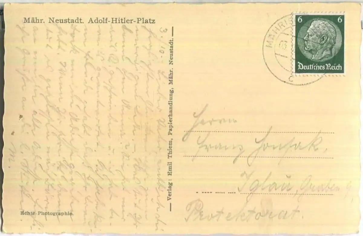 Mährisch Neustadt - Unicov - Adolf-Hitler-Platz - Verlag Emil Thiem Mähr Neustadt (E94467) gel. 1939