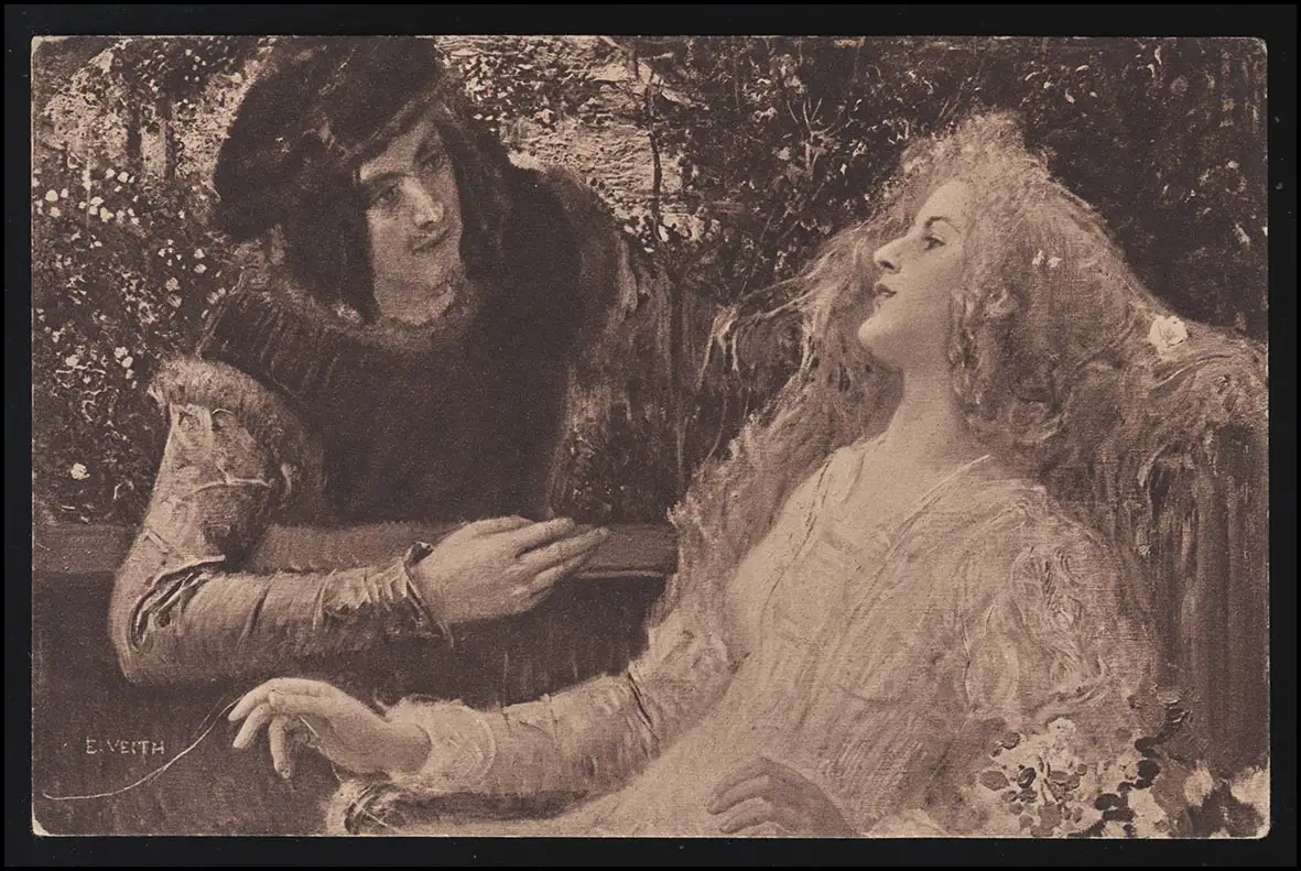Märchen Prinz und das erwachende Dornröschen, sign. Eduard Veith, ungebraucht
