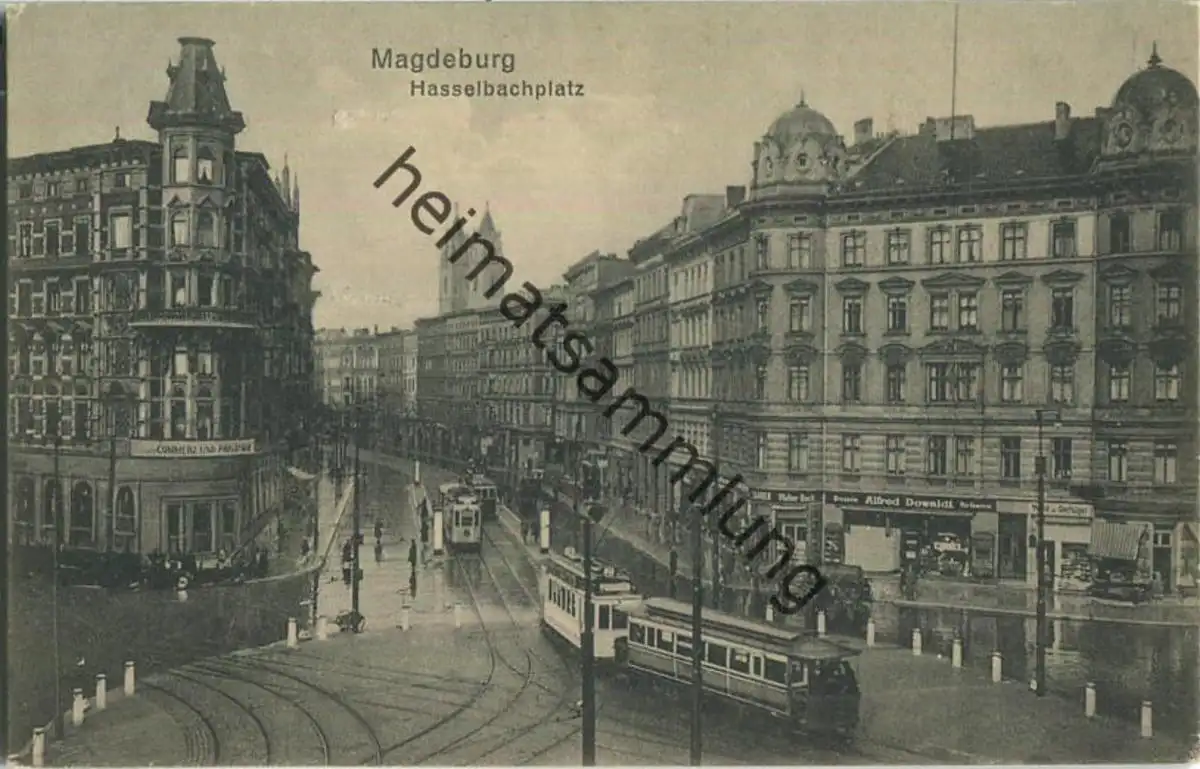 Magdeburg - Hasselbachplatz - Strassenbahnen (E39348) gel. 1927