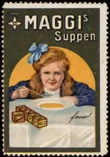 Maggis Suppen, Größe/Zustand: 5x4 , guter Zustand, Original alte Reklamemarke die seinerzeit für die Werbung benutzt wurde