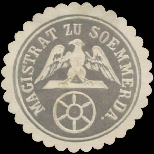 Soemmerda, grau, weiß, geprägt, Größe/Zustand: 3 , guter Zustand, Original Verschluss-Siegelmarke aus Papier welche früher von Behörden, Firmen etc. zum Versiegeln der Briefe benutzt wurden