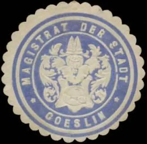 Coeslin, blau, weiß, geprägt, Größe/Zustand: 3 , guter Zustand, Original Verschluss-Siegelmarke aus Papier welche früher von Behörden, Firmen etc. zum Versiegeln der Briefe benutzt wurden