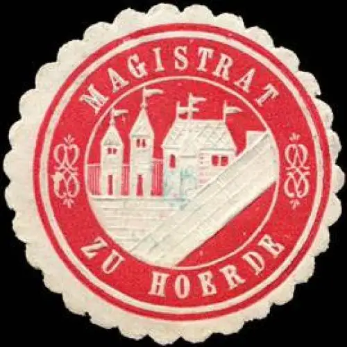 Hoerde, rot, weiß, geprägt, Größe/Zustand: 4 , leicht fleckig, Original Verschluss-Siegelmarke aus Papier welche früher von Behörden, Firmen etc. zum Versiegeln der Briefe benutzt wurden