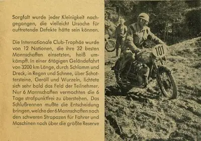 6 Seiten DinA6 „Triumph der Zuverlässigkeit, Int. 6-Tagefahrt 1952“ Guter Zustand