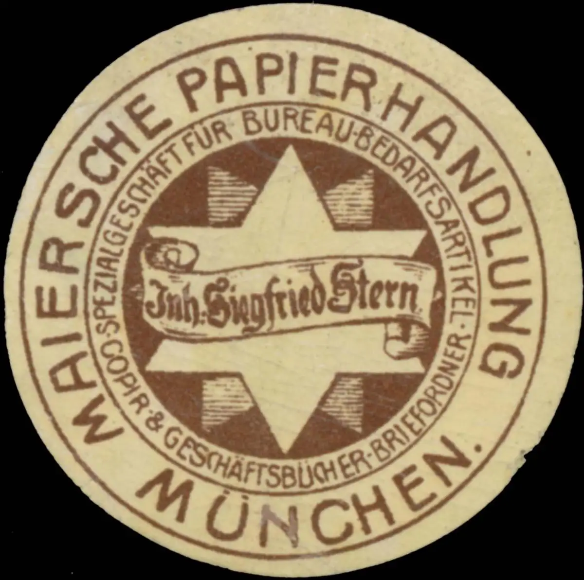 Spezialgeschäft für Büro-Bedarfsartikel, Geschäftsbücher, Inhaber: Siegfried Stern, Größe/Zustand: 4 , leicht beschädigt, Original alte Reklamemarke die seinerzeit für die Werbung benutzt wurde
