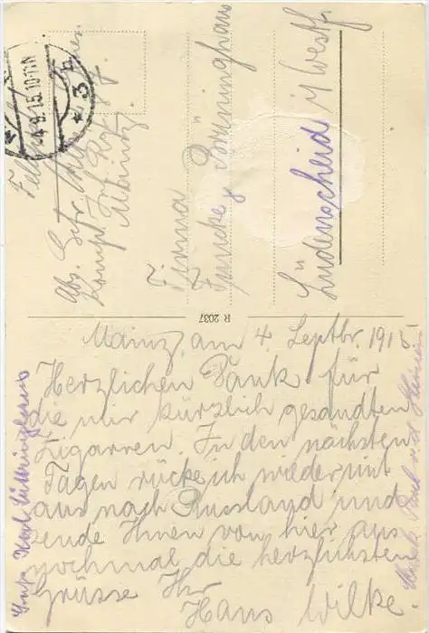 Mainz - Christus-Kirche - Feldpost - rückseitig Klebestelle (E19186) gel. 1915