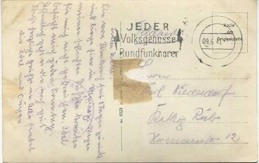 Mainz - Christuskirche - Feldpost - Gebrauchsspuren - rückseitig Klebepunkt (E20131) gel. 1941