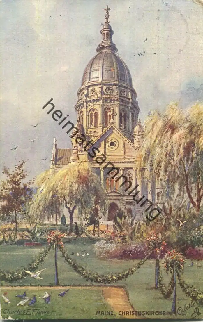 Mainz - Christuskirche - signiert Charles F. Flower - Oilette - Verlag Raphael Tuck & Sons Berlin (G50246) gel. 1910