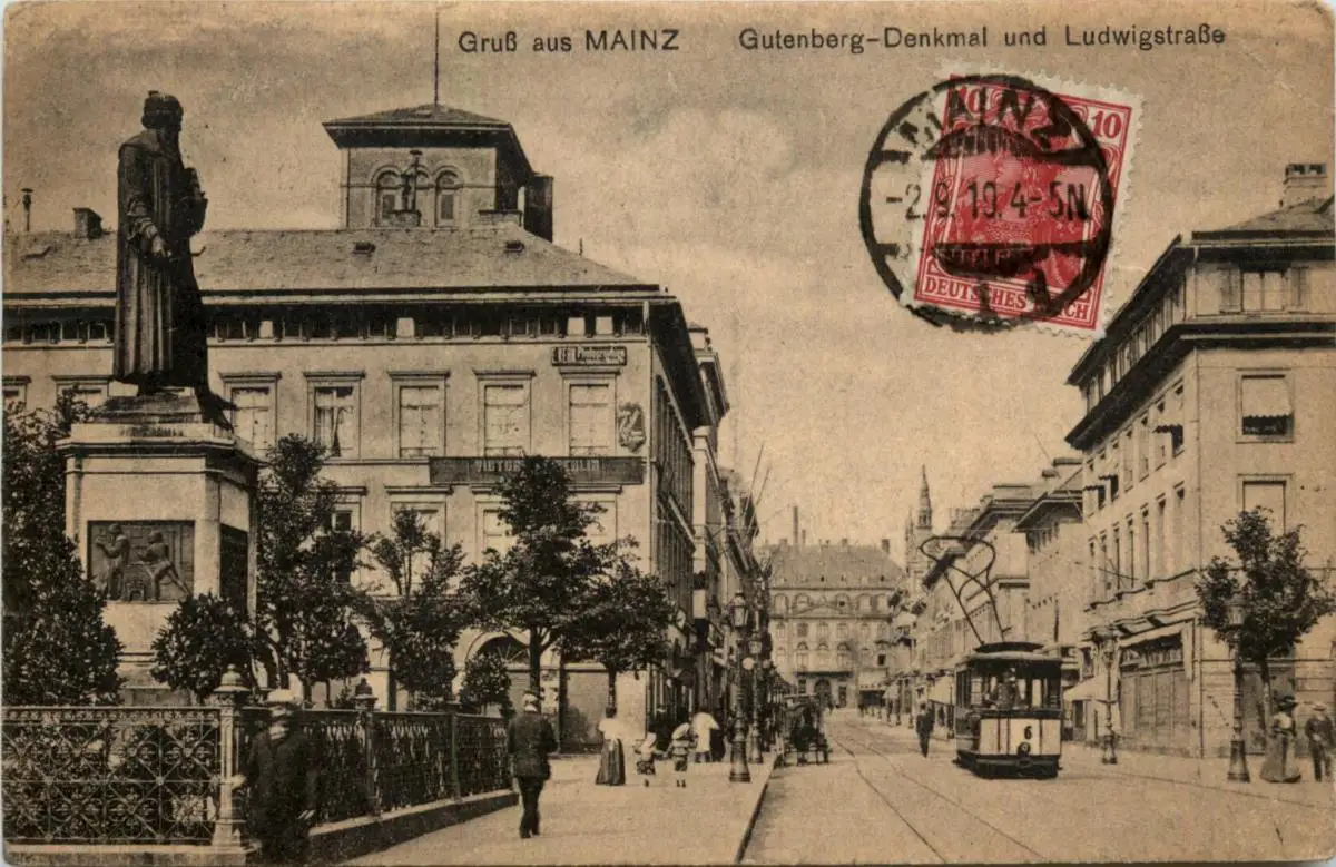 Mainz, Gutenbergdenkmal und ludwigstrasse -343320