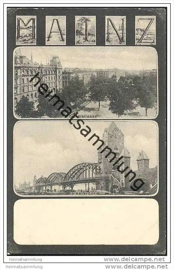 Mainz - Kaiserstrasse - Kaiserbrücke - Ecken bestossen - Briefmarke entfernt (G19238) gel. 1907