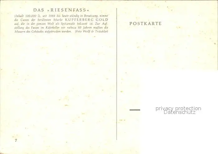Mainz Rhein Das Riesenfass Kupferberg Gold Mainz Rhein postalisch nicht gelaufen 1921-1965 Erhaltung siehe scans Alte Ansichtskarte Postkarte LiesID40