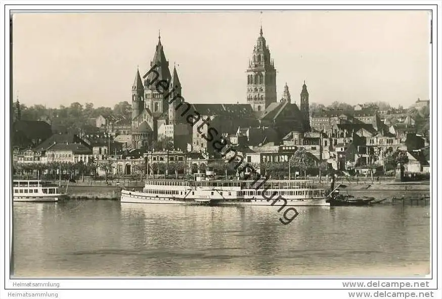 Mainz - Rheinufer - Rheinschiff Frieden - Foto-AK (G23805) gel. 1954