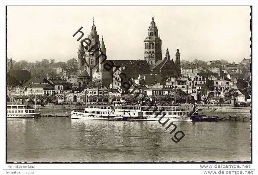 Mainz - Rheinufer - Rheinschiff Frieden - Foto-AK