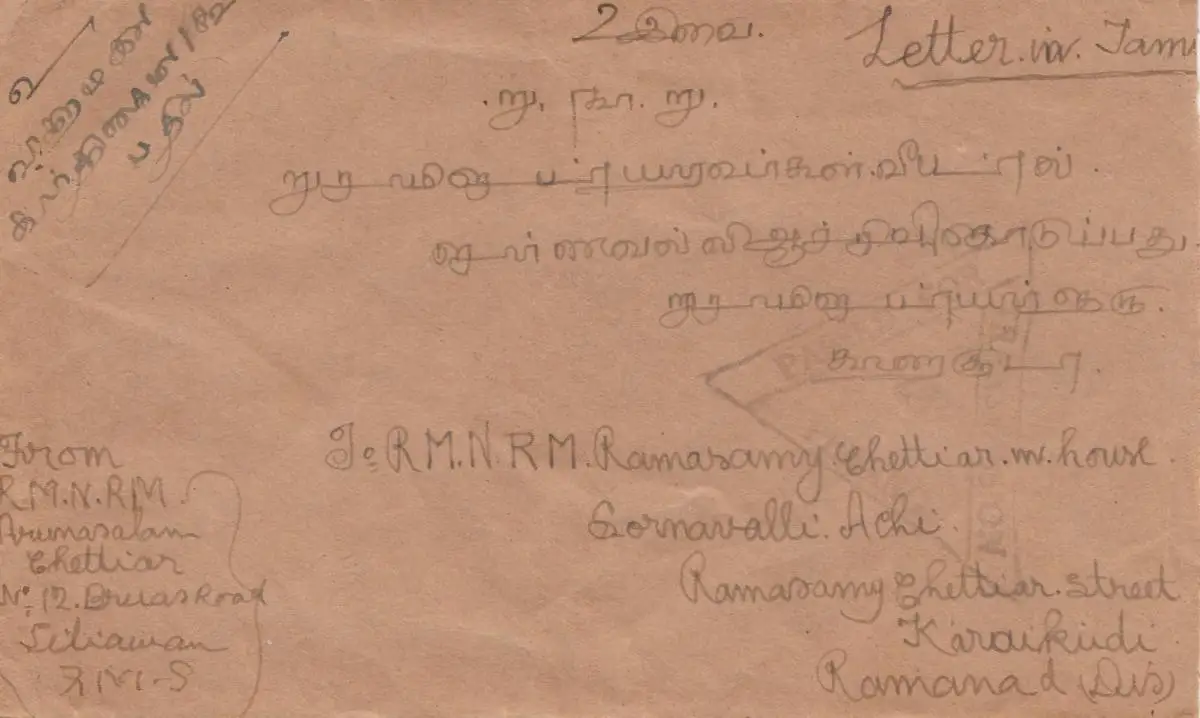 Malaysia: 1940: letter to Karaikudi/Ramnad Distr. India
