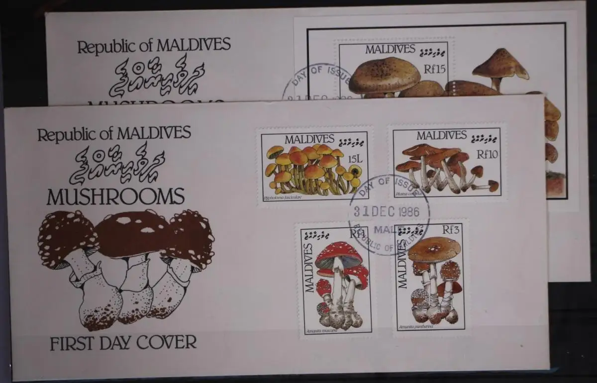 Malediven 1234, 1236, 1238, 1241 und Block 130 gestempelt als FDC #GC007