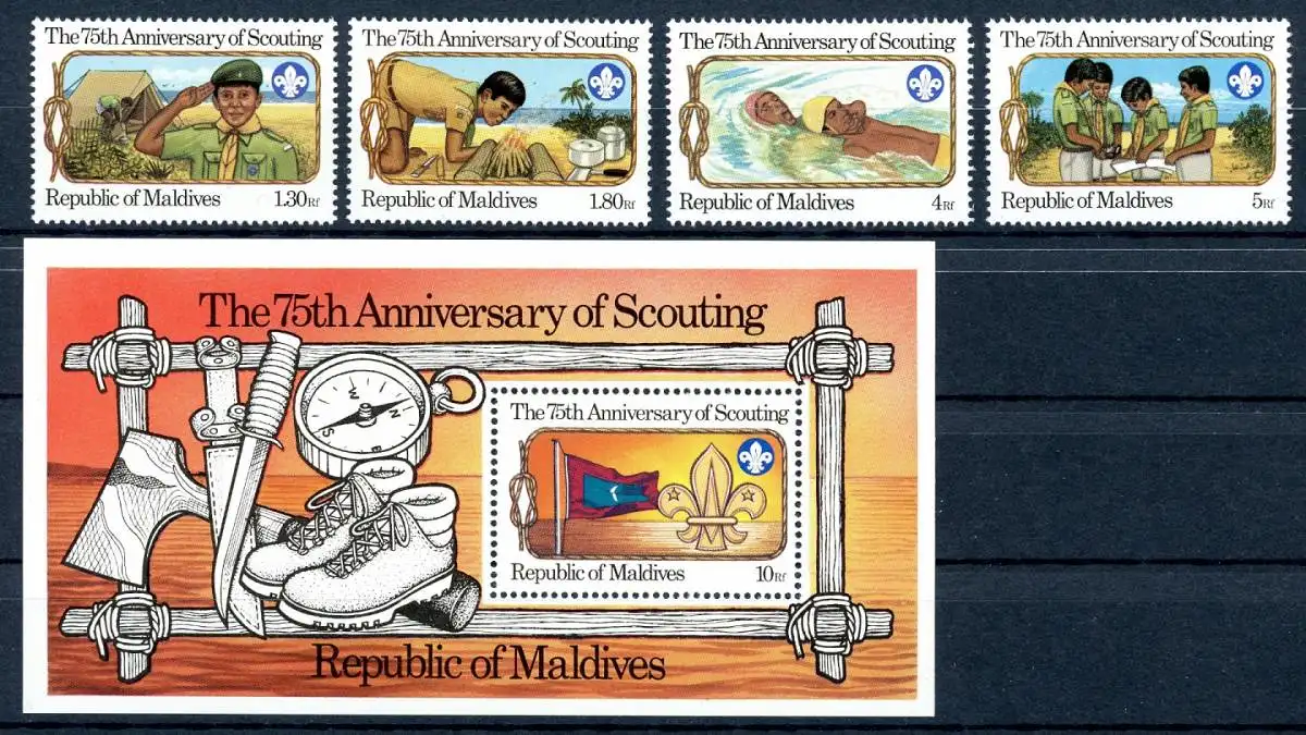 Malediven 977-980 + Block 83 A postfrisch Pfadfinder #IM021