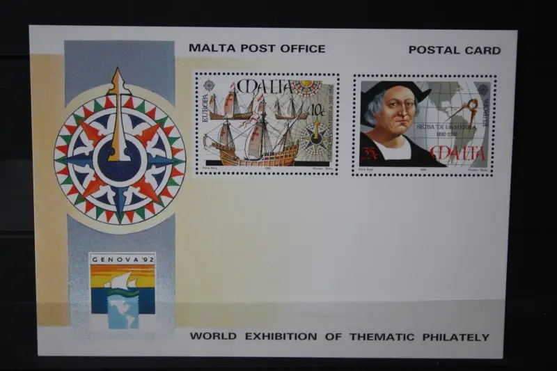 Malta, Ganzsache Genova 1992, Wertstempel CEPT EUROPA-UNION 1992