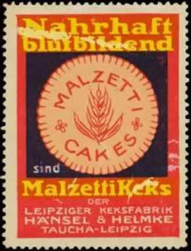 Nahrhaft blutbildend sind Malzetti Keks, Größe/Zustand: 5x4 , Fehldruck, guter Zustand, Original alte Reklamemarke die seinerzeit für die Werbung benutzt wurde
