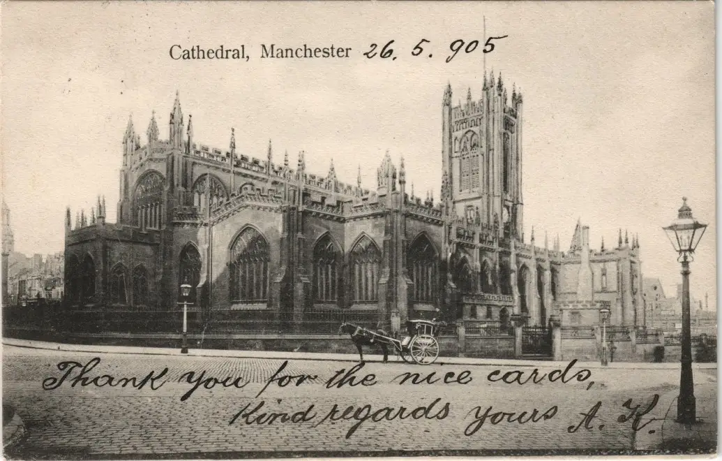 Manchester Cathedral (Kathedrale) Strassen Partie, Street View 1905