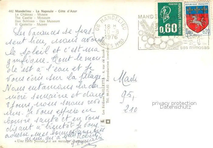 Mandelieu-la-Napoule Le Chateau Musee Mandelieu-la-Napoule postalisch gelaufen 1976 Erhaltung siehe scans [WerneD78] WernPID7