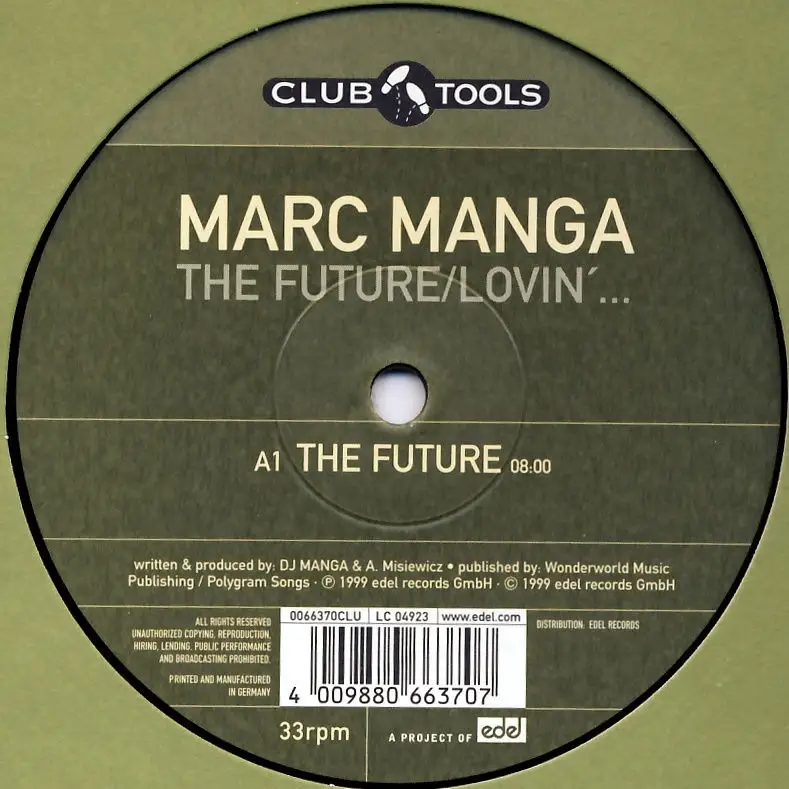 12" Maxi Marc Manga - The Future / Lovin', Einheitscover der Plattenfirma mit Info-Aufkleber, Zustand Platte M- Hülle M-; Made in Germany 1999 Club Tools 0066370 CLU, Tracks The Future 8:00, Lovin' 7:28