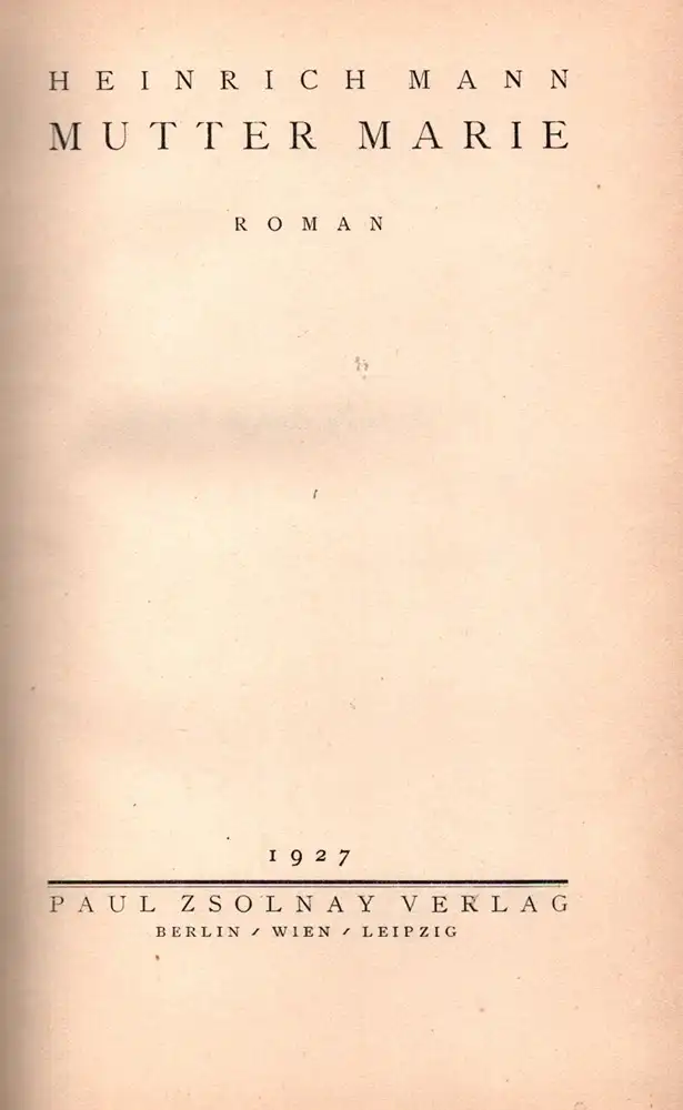 Mann, Heinrich: Mutter Marie. Roman. (1.-30. Tsd.).