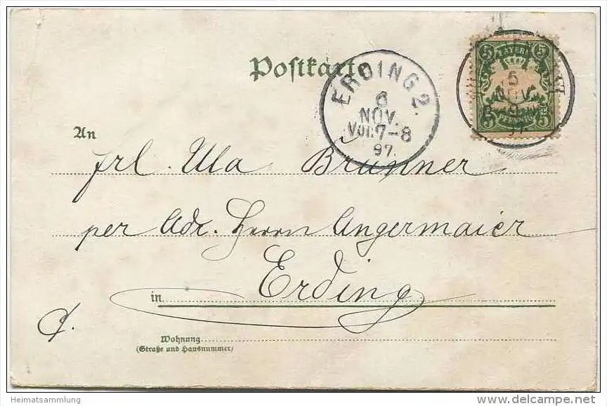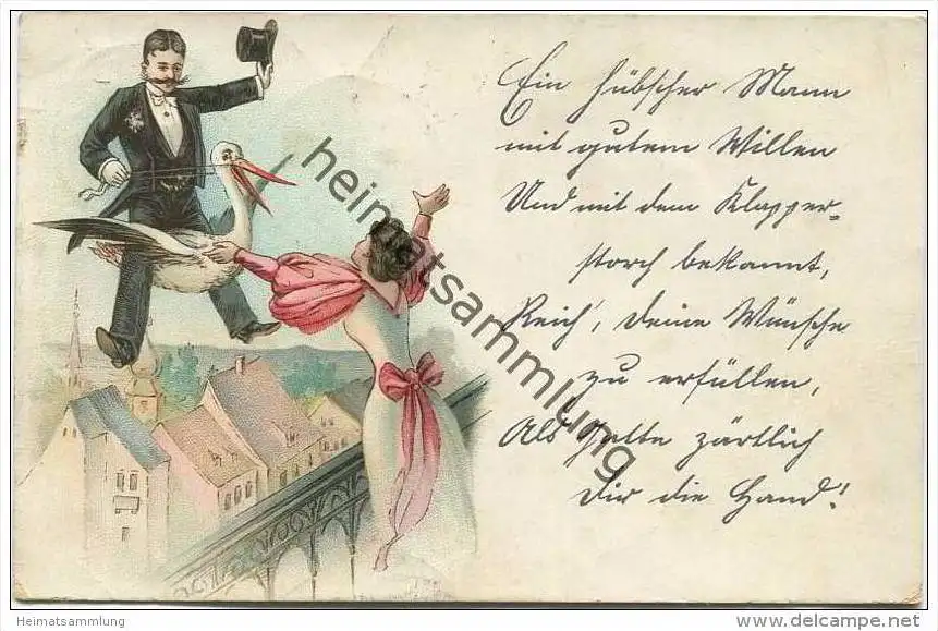 Mann fliegt auf Klapperstorch - leichte Gebrauchsspuren (G28811) gel. 1897