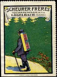 Scheurer Freres Teigwarenfabrik Logelbach, Größe/Zustand: 7x5 , guter Zustand, Original alte Reklamemarke die seinerzeit für die Werbung benutzt wurde