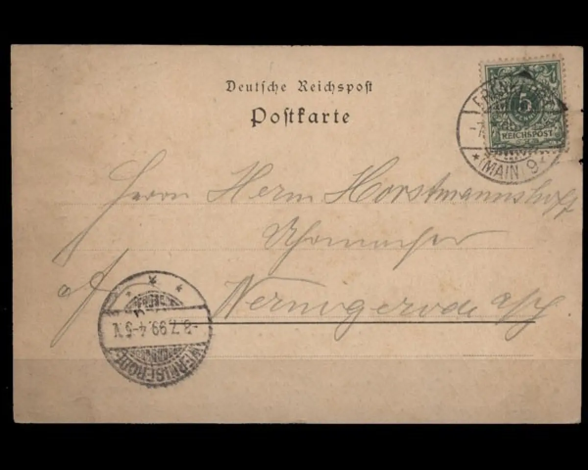 s/w Karte, gelaufen 1899, 1 bräunlicher Fleck, sonst gute Erhaltung PLZ 35...