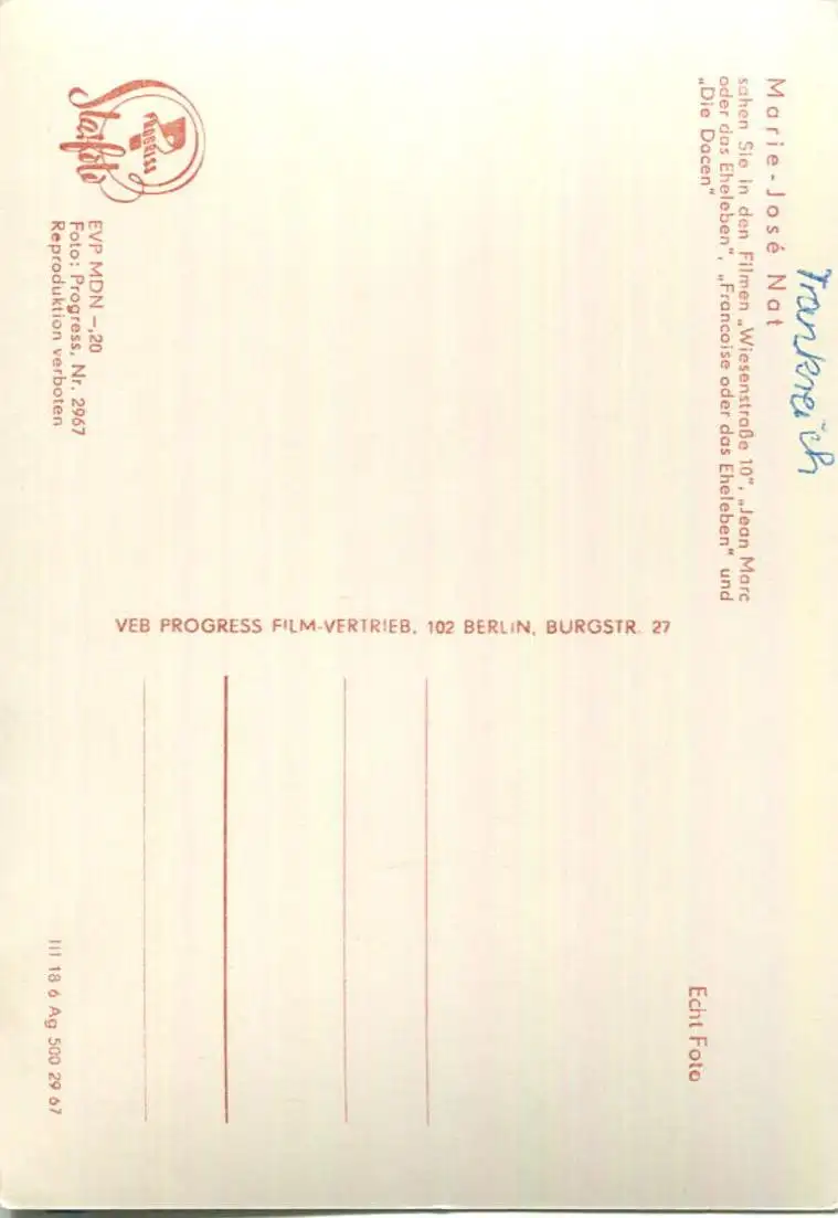 Marie Jose Nat - VEB Progress Film Vertrieb Berlin 1967 - leichte Gebrauchspuren (G16023) *
