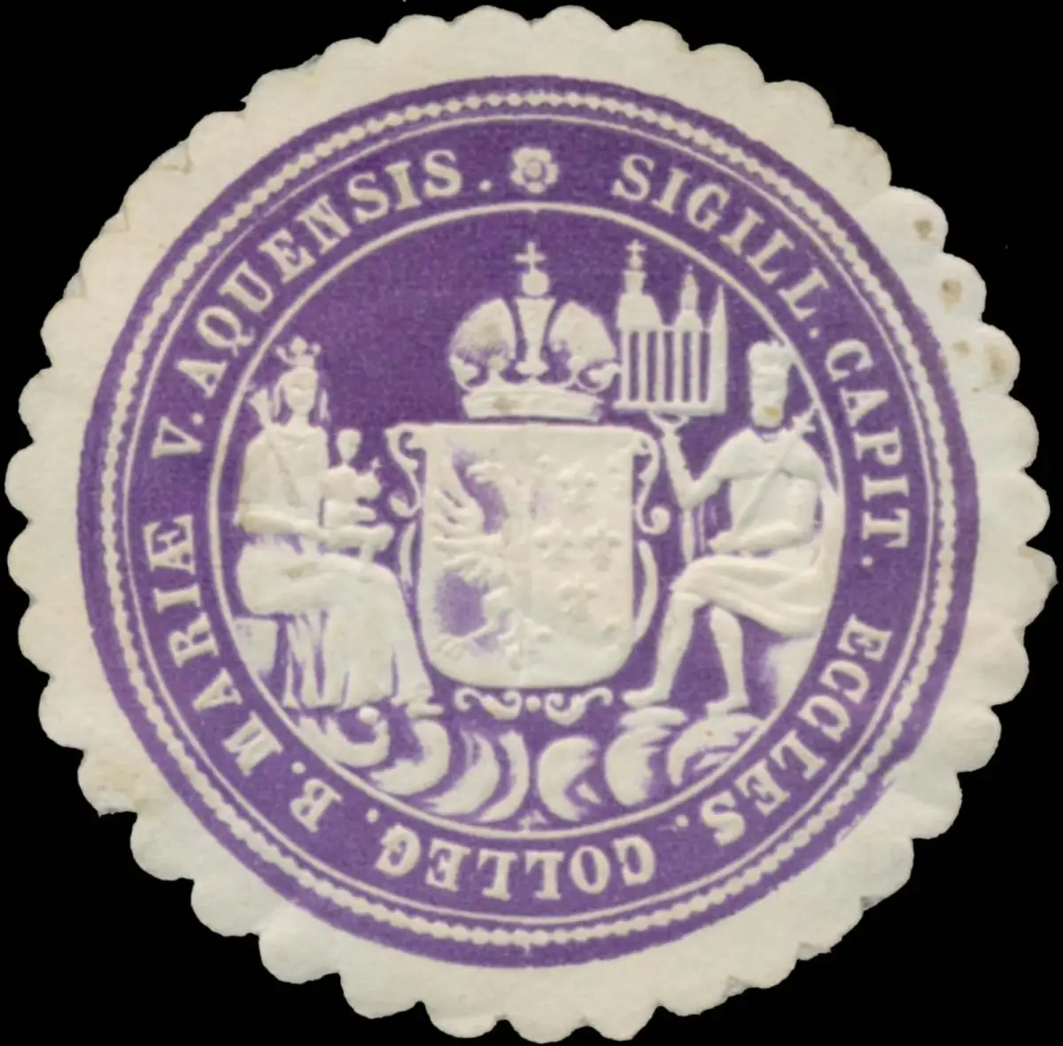sigill. capit. eccles. colleg. b. Mariae v. Aquensis, Kirche, Religion, violett, weiß, geprägt, Größe/Zustand: 4 , guter Zustand, Original Verschluss-Siegelmarke aus Papier welche früher von Behörden, Firmen etc. zum Versiegeln der Briefe benutzt wurden