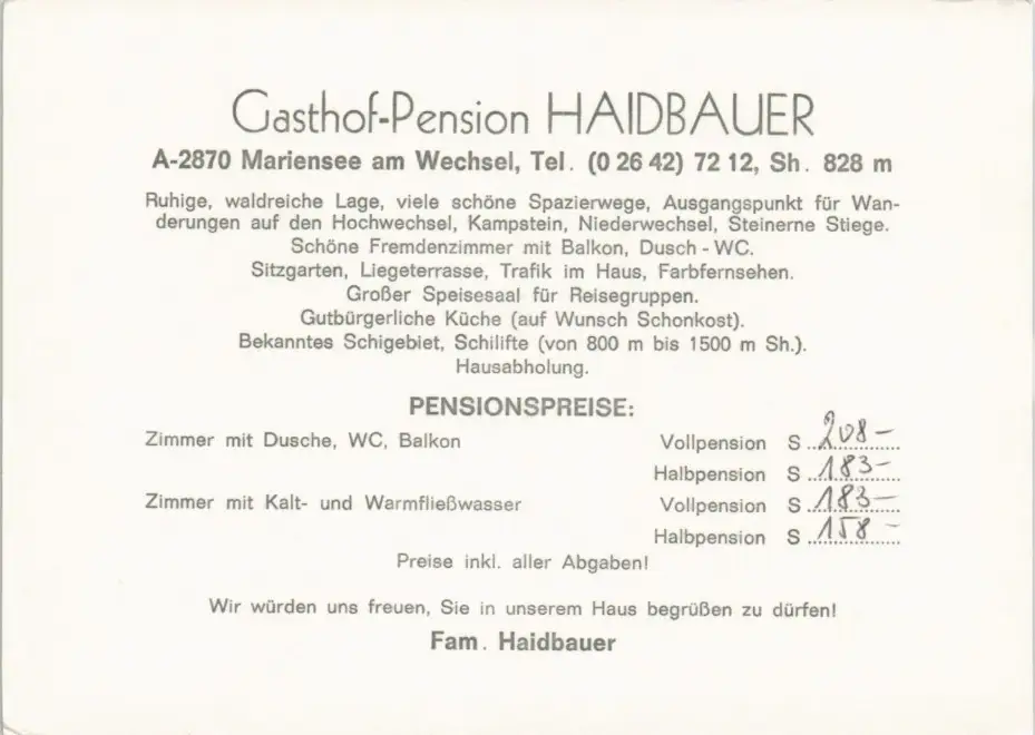 Mariensee am Wechsel Gasthof-Pension HAIDBAUER MB 4 Ansichten 1975