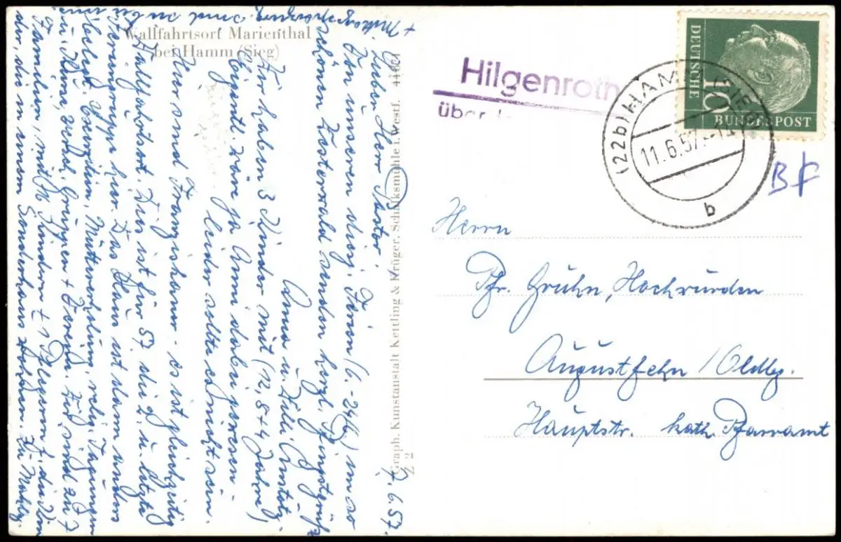 Marienthal-Hamminkeln Kirche 1957 gelaufen mit Landpoststempel HILGENROTH