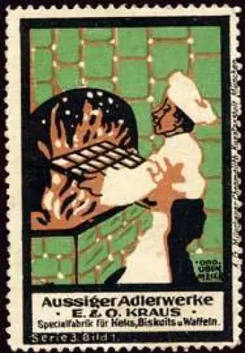 Serie 3, Bild 1, Specialfabrik für Keks, Biskuits und Waffeln, Bäcker, Bäckerei, Größe/Zustand: 5x4 , guter Zustand, Original alte Reklamemarke die seinerzeit für die Werbung benutzt wurde