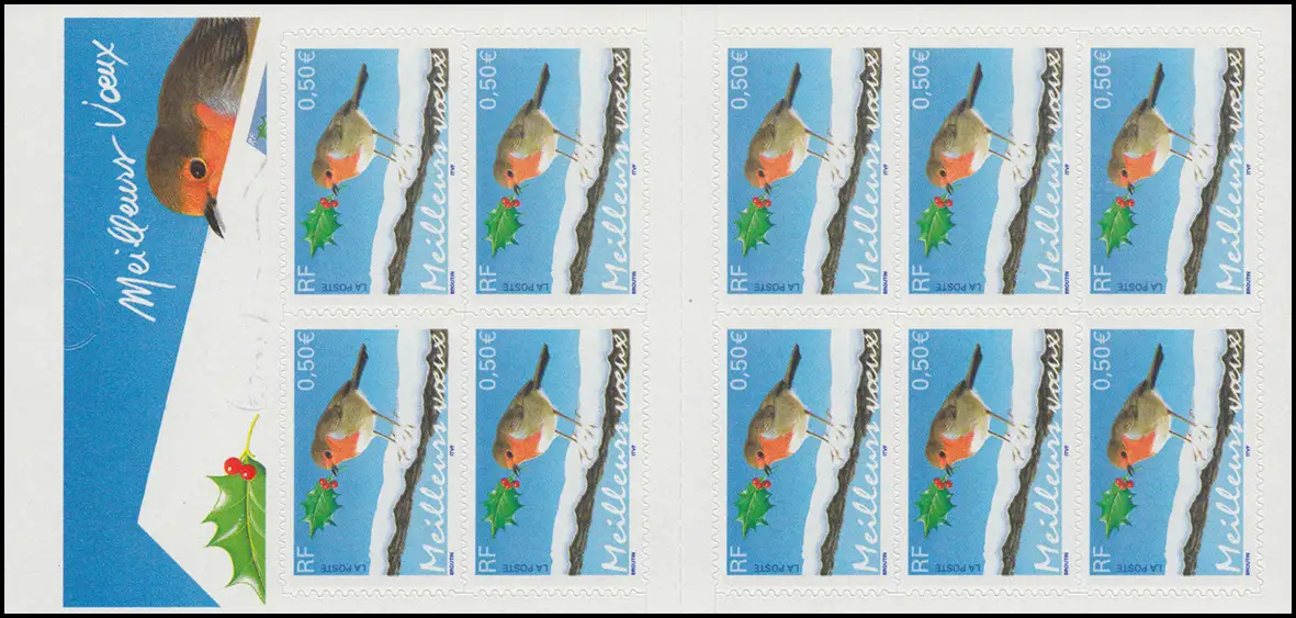 Markenheftchen 3765 Weihnachten und Neujahr: Rotkehlchen, selbstklebend, **
