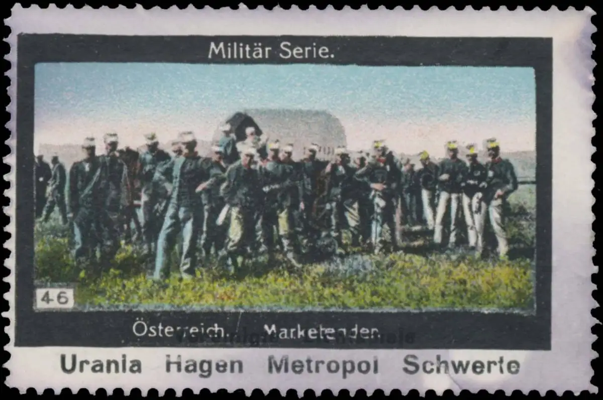 Militär Serie, Kino Urania in Hagen und Kino Metropol in Schwerte, Größe/Zustand: 4x6 , fleckig, Original alte Reklamemarke die seinerzeit für die Werbung benutzt wurde