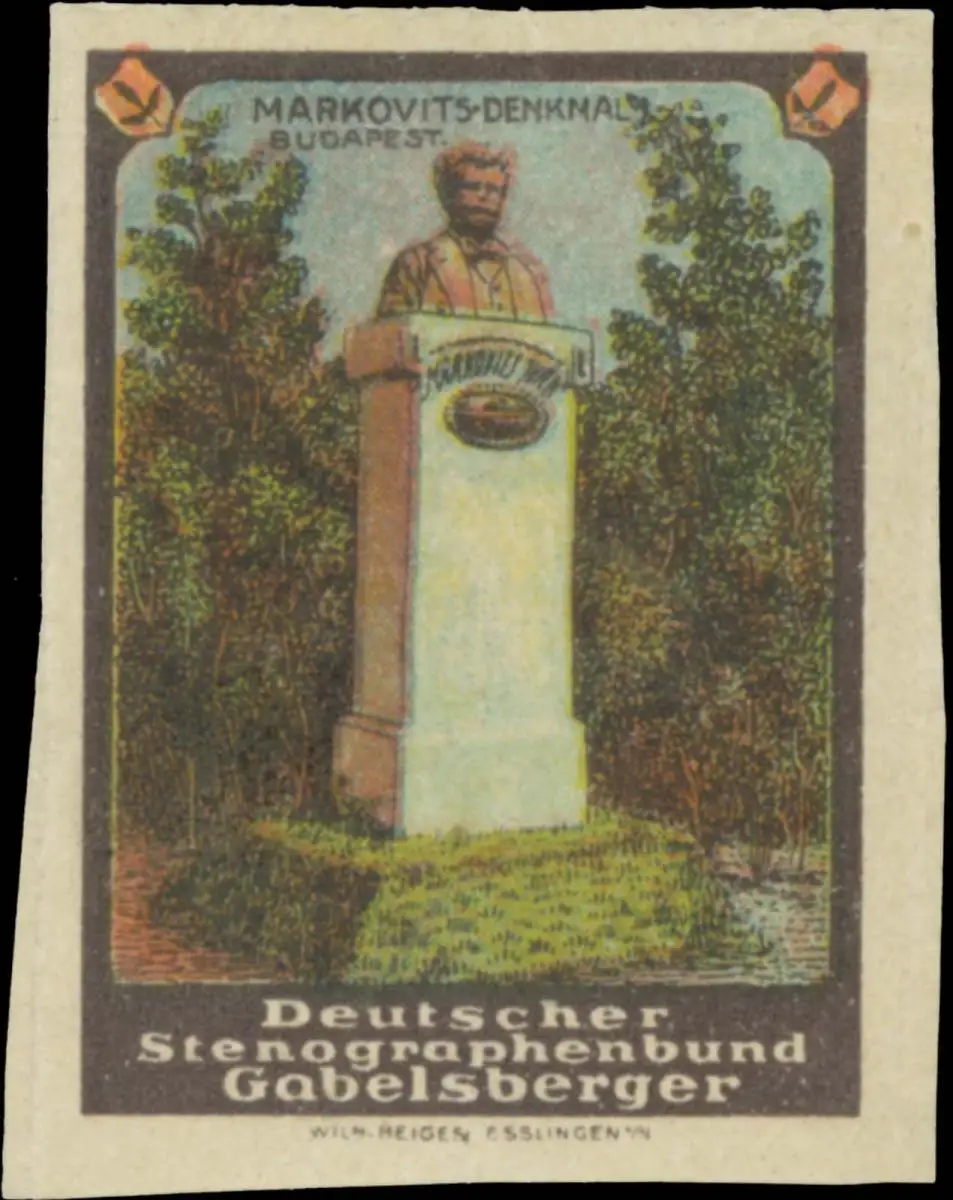 Stenographie, Stenografie, Druck: Wilh. Heiges, Esslingen, Iván Markovits, Größe/Zustand: 4x3 , beschnitten sonst guter Zustand, Original alte Reklamemarke die seinerzeit für die Werbung benutzt wurde