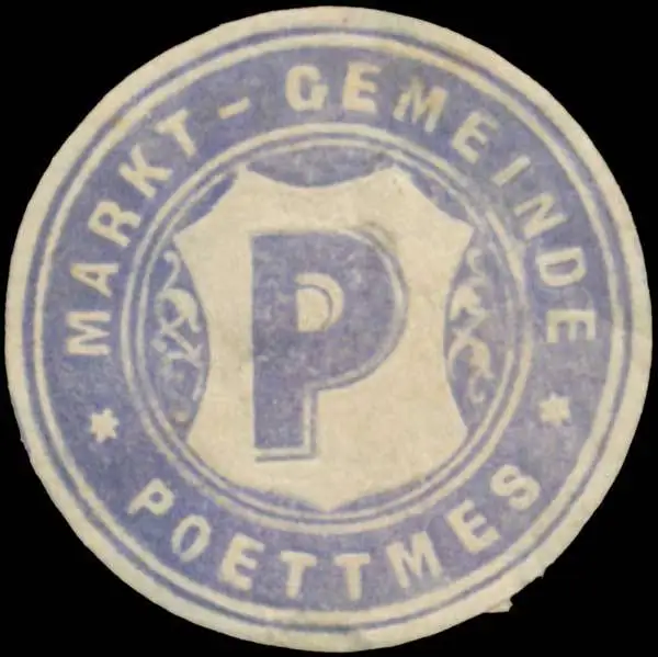 Poettmes, blau, weiß, geprägt, Größe/Zustand: 3 , beschädigt, Original Verschluss-Siegelmarke aus Papier welche früher von Behörden, Firmen etc. zum Versiegeln der Briefe benutzt wurden