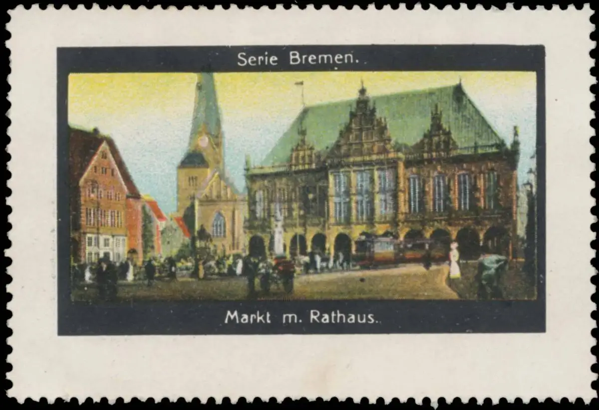 Serie Bremen, Größe/Zustand: 4x7 , leicht fleckig, Original alte Reklamemarke die seinerzeit für die Werbung benutzt wurde