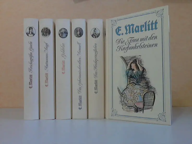 die Bücher sind in einem gutem, gebrauchten Zustand, Eugenie Marlitt (1825 -1887), studierte zunächst Gesang am Wiener Konservatorium, mußte dann aber ihren Beruf als Sängerin infolge eines Gehörschadens aufgeben. Vom Krankenstuhl aus schrieb sie von 1863 bis zu ihrem Tod bewegende Frauenromane, die zu den meistgelesenen ihrer Zeit wurden. Die "Gartenlaube", die alle ihre Bücher abdruckte, verdreifachte dadurch ihre Abonenntenzahl und nicht nur Gottfried Keller schrieb über sie: "Ich habe dieses Frauenzimmer bewundert". Die gelungene Mischung aus Spannung, Gesellschaftskritik und anrührender menschlichkeit findet auch heute noch begeisterte Leser. Fünf der bekanntesten Romane liegen in dieser Edition jetzt wieder vor. (über die Autorin) Beschreibung vom Antiquariat Ardelt 2e5 Antiquariat Ardelt