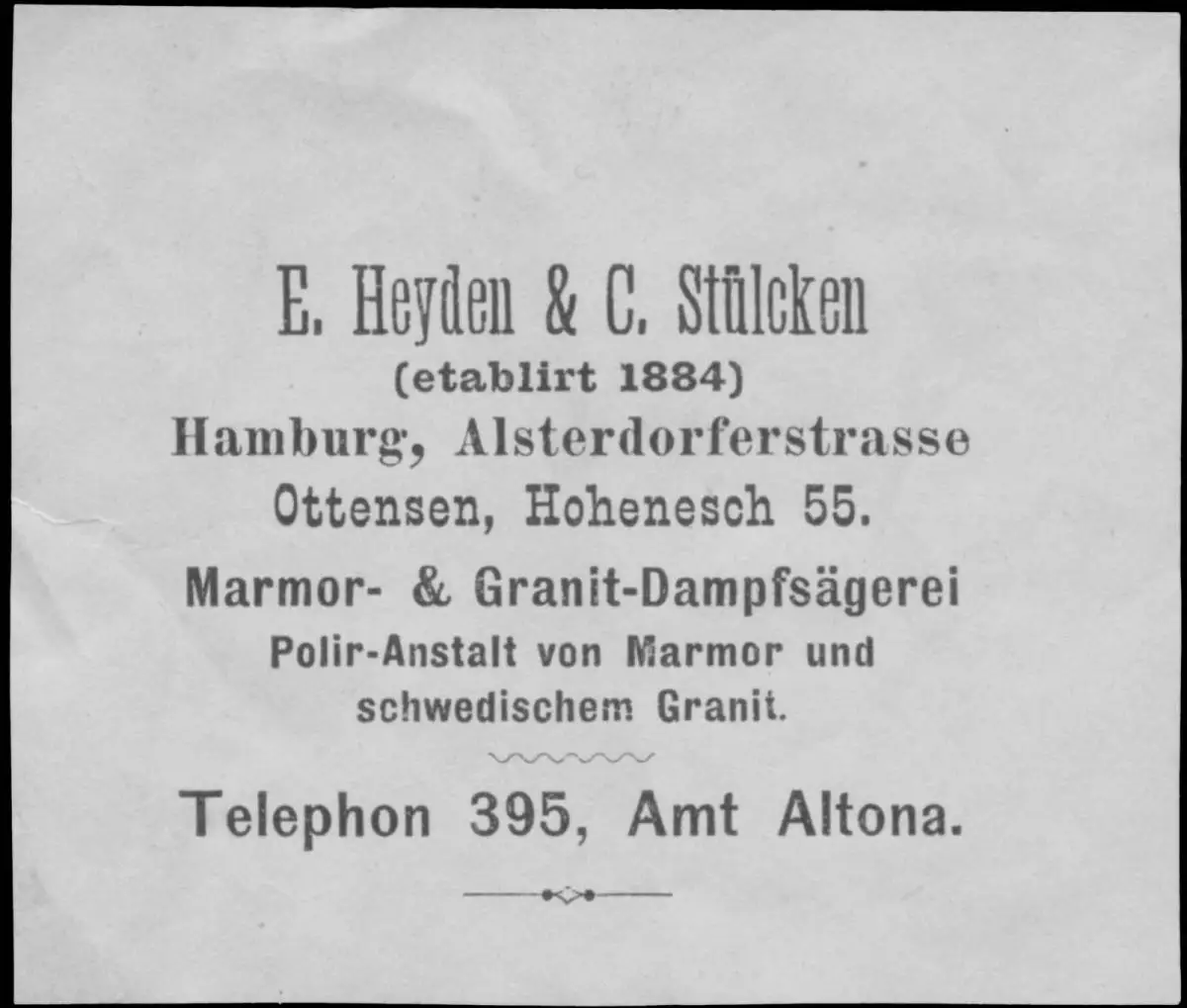Regionaler Bezug: E. Heyden & C. Stülcken Hamburg