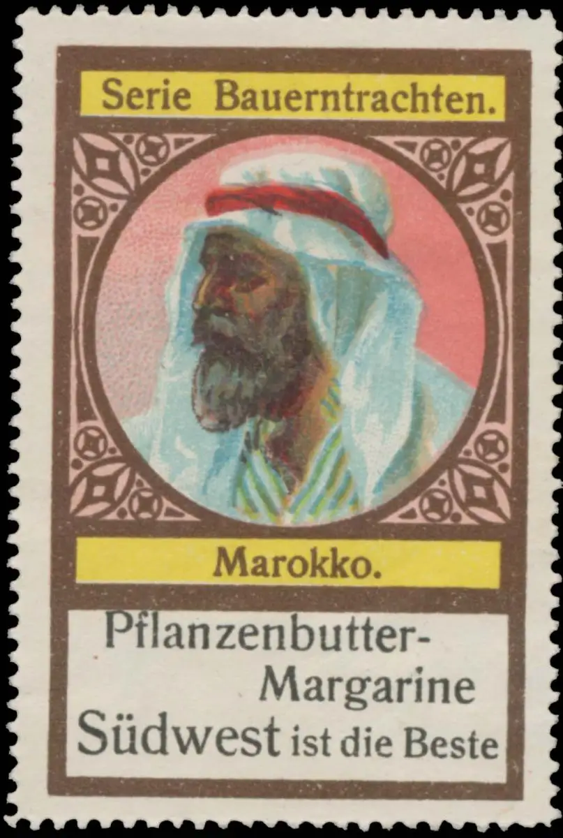 Serie Bauerntrachten, Pflanzenbutter-Margarine Südwest ist die Beste, Größe/Zustand: 6x4 , guter Zustand, Original alte Reklamemarke die seinerzeit für die Werbung benutzt wurde