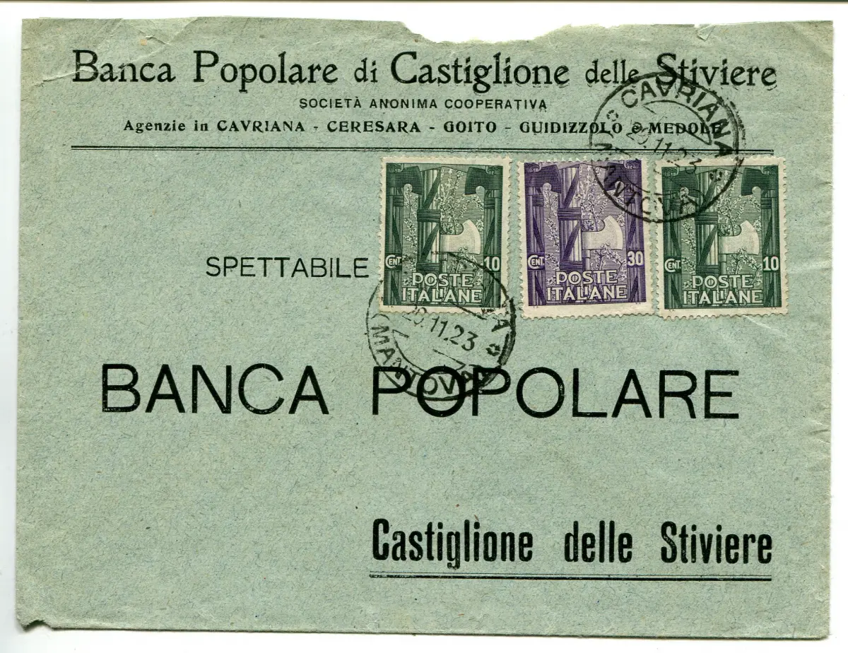 - Marsch auf Rom Cent. 10 Nr. 141 zwei Exemplare + Ergänzung Nr. 142 auf Umschlag von Cavriana nach Castiglione am 29.11.23 - Kat. euro 210 n. 81/A