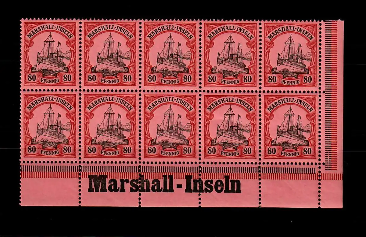 Marschall-Inseln: MiNr. 21, 10er Block mit Inschrift Eckrand, postfrisch **