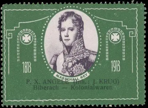 Kolonialwaren F.X. Angele (Inhaber: J. Krug), Befreiungskriege, Völkerschlacht, Größe/Zustand: 3x6 , guter Zustand, Original alte Reklamemarke die seinerzeit für die Werbung benutzt wurde