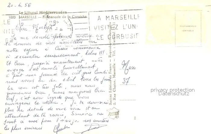 Marseille_Bouches-du-Rhone Promenade de la Corniche Marseille postalisch gelaufen 1956 Erhaltung siehe scans [FriedD77] Frierer