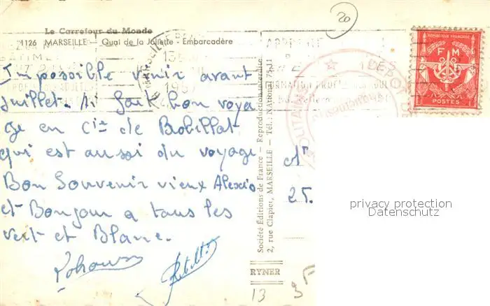 Marseille_Bouches-du-Rhone Quai de la Joliette Embarcadere Marseille postalisch gelaufen 1956 Erhaltung siehe scans [WerneD78] WernPID7