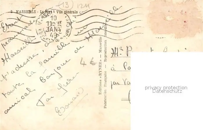 Marseille_Bouches-du-Rhone Vue générale Port Marseille postalisch gelaufen 1949 Erhaltung siehe scans [FriedD77] Frierer