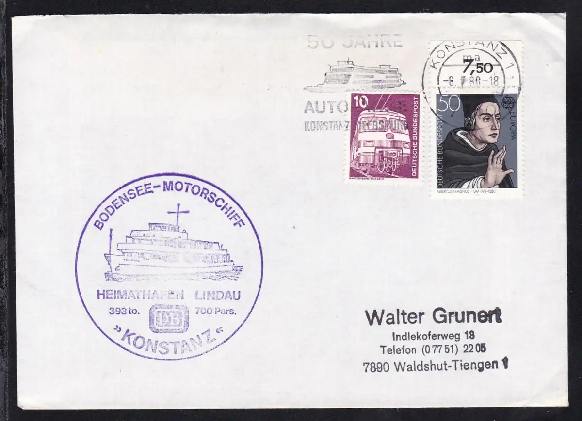 Maschinenstempel Konstanz 8.7.80 50 Jahre Autofähre Konstanz-Meersburg + Cachet